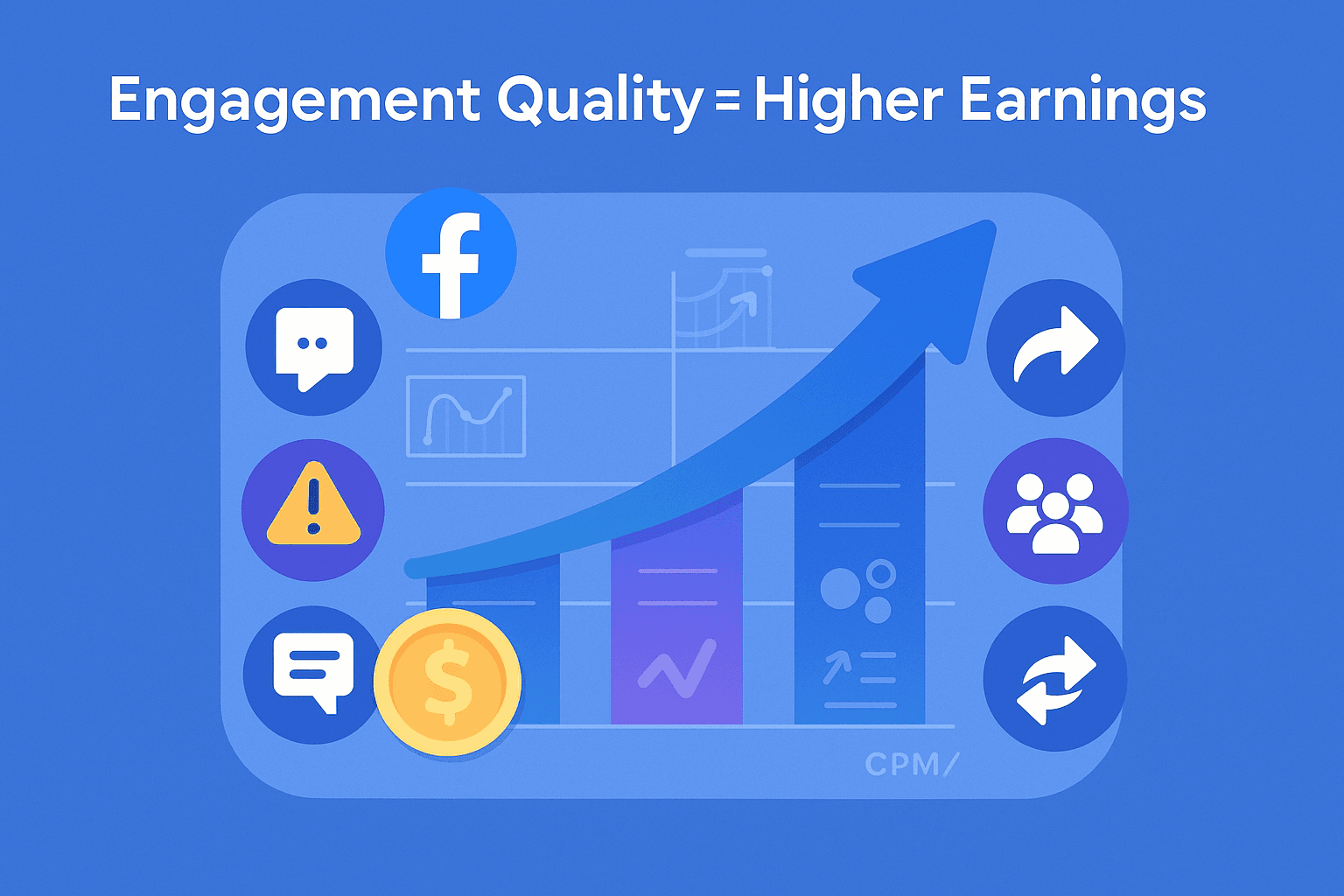 High engagement creators consistently earn more money than creators with large but inactive audiences. Facebook’s monetization system ties engagement depth to advertiser value, and advertiser value determines CPM/RPM.