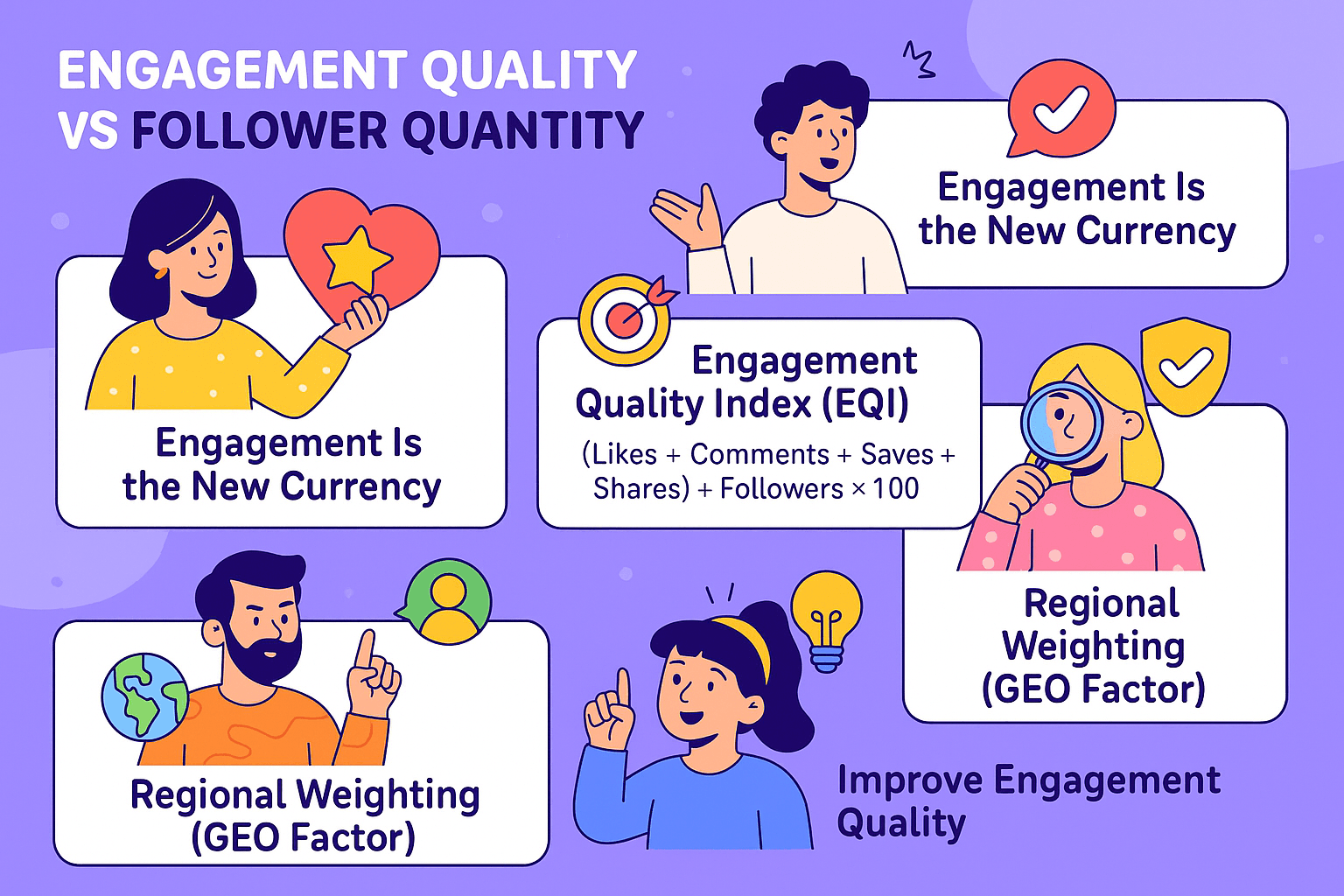 To help creators evaluate their income potential, many marketers now use the Engagement Quality Index (EQI) — a ratio combining engagement and follower size to estimate account monetization readiness.