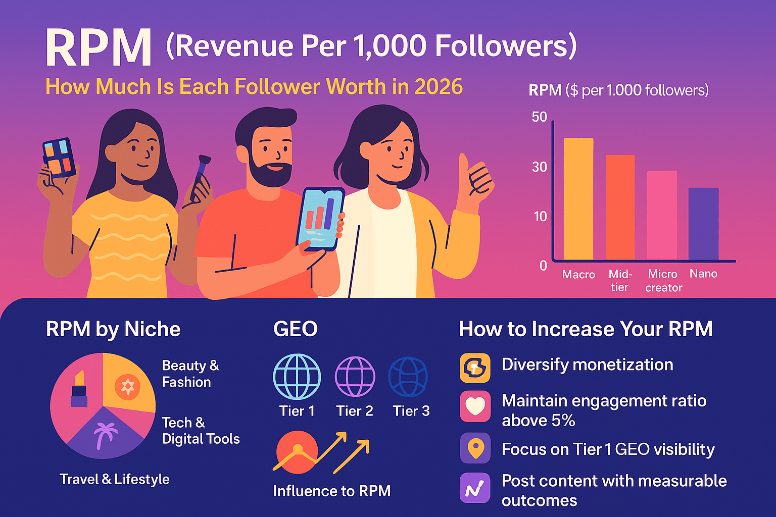 Ultimately, RPM isn’t just about the number of followers — it’s a reflection of how well your content connects, converts, and sustains engagement. A 1K loyal audience can outperform a 100K passive one when every view and interaction drives measurable revenue.