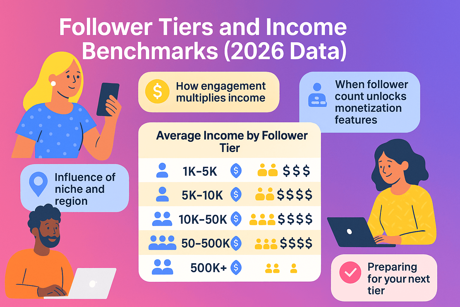 Once you understand how engagement quality drives visibility, the next question becomes: how does follower count convert into real income? In 2026, the link between followers and earnings is more fluid than ever — shaped by your niche, audience geography, and interaction depth.