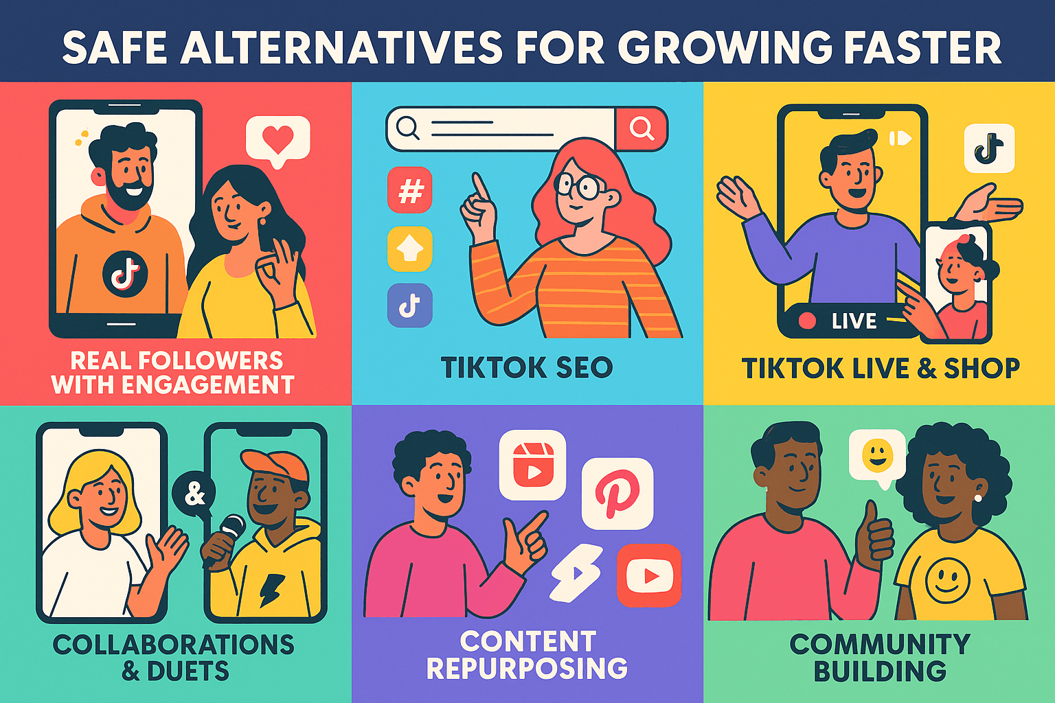 Buying followers safely is just one part of a strong TikTok strategy. If you want to grow faster without risking your account, there are several safe alternatives that complement or even replace purchased growth. These methods build engagement, strengthen algorithm trust, and improve credibility with your audience.