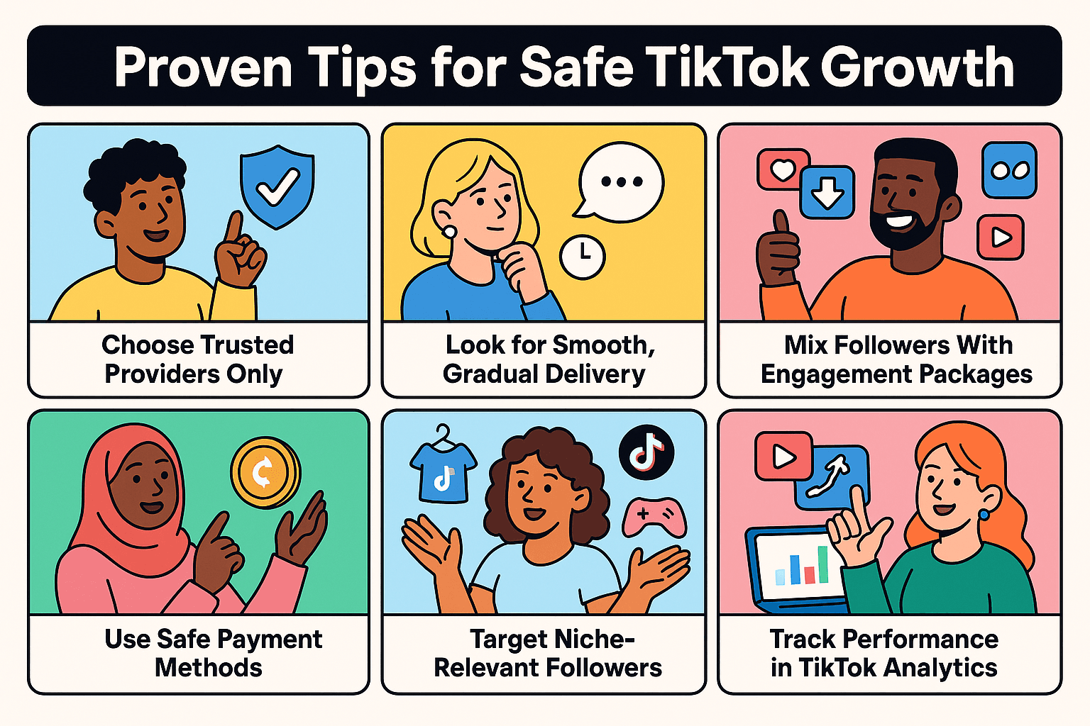 The safest way to grow is to measure your results. Use TikTok’s built-in analytics to track engagement, follower drops, and algorithm reach. If your engagement ratio stays healthy and your reach improves, your strategy is working. Safe growth is always measurable growth.