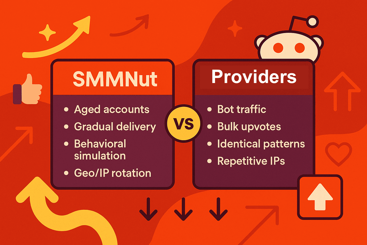 Not all Reddit growth platforms are created equal. Many low-cost SMM panels still rely on outdated bulk automation, which triggers Reddit’s behavioral fingerprint system and puts your account at risk. In contrast, SMMNut operates on a credibility-first delivery framework — designed for Reddit’s 2026 algorithm and long-term account health.
