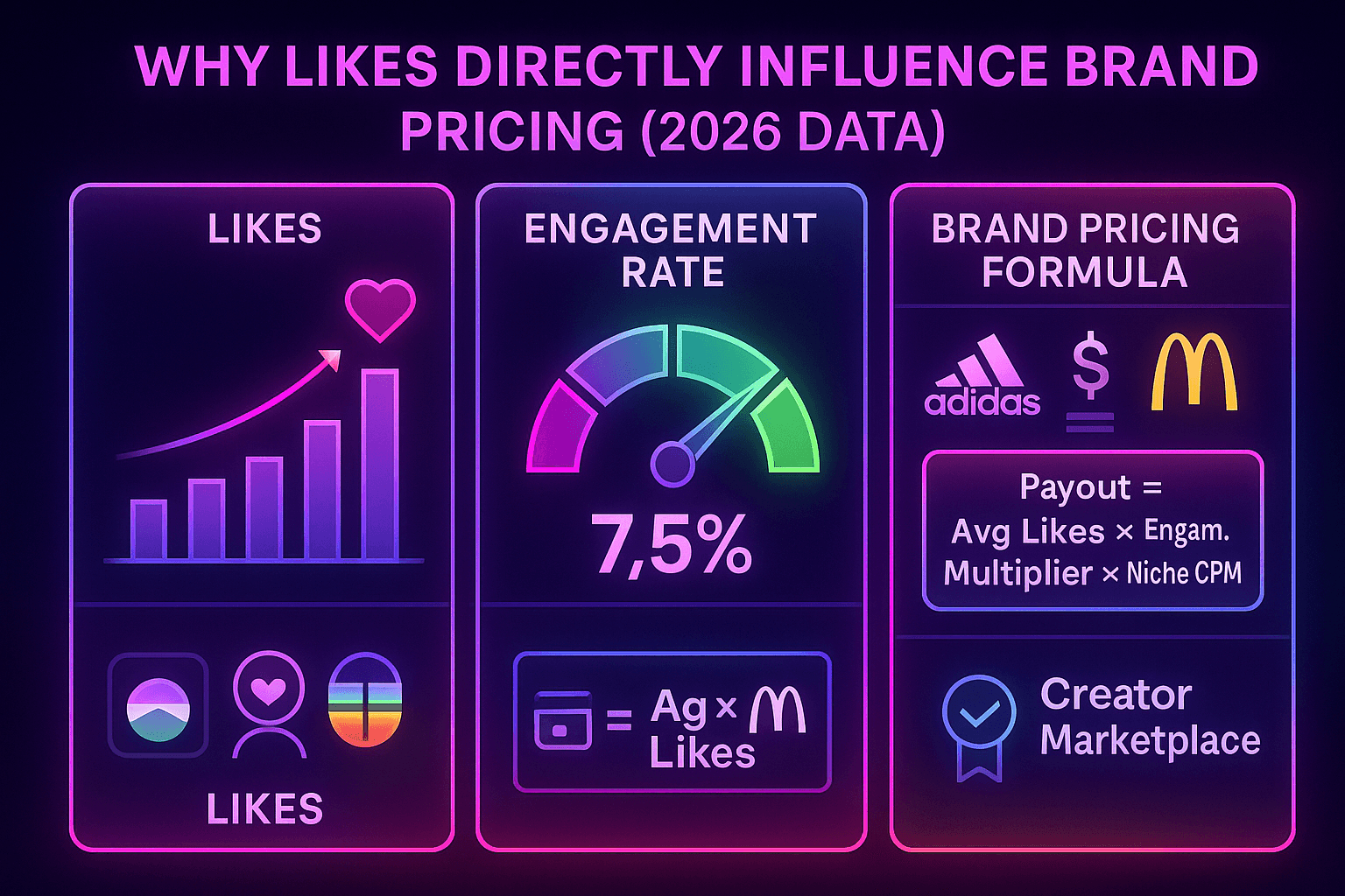 This is why a creator with 1,500 high-quality likes on each post can earn more than someone with 100,000 followers. Likes decide your economic value in 2026.