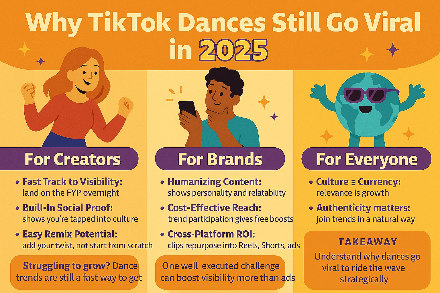 Understanding why TikTok dances still go viral isn’t just trivia — it’s a roadmap. The same forces that make a simple dance trend explode can also fuel your growth if you know how to align with them.
