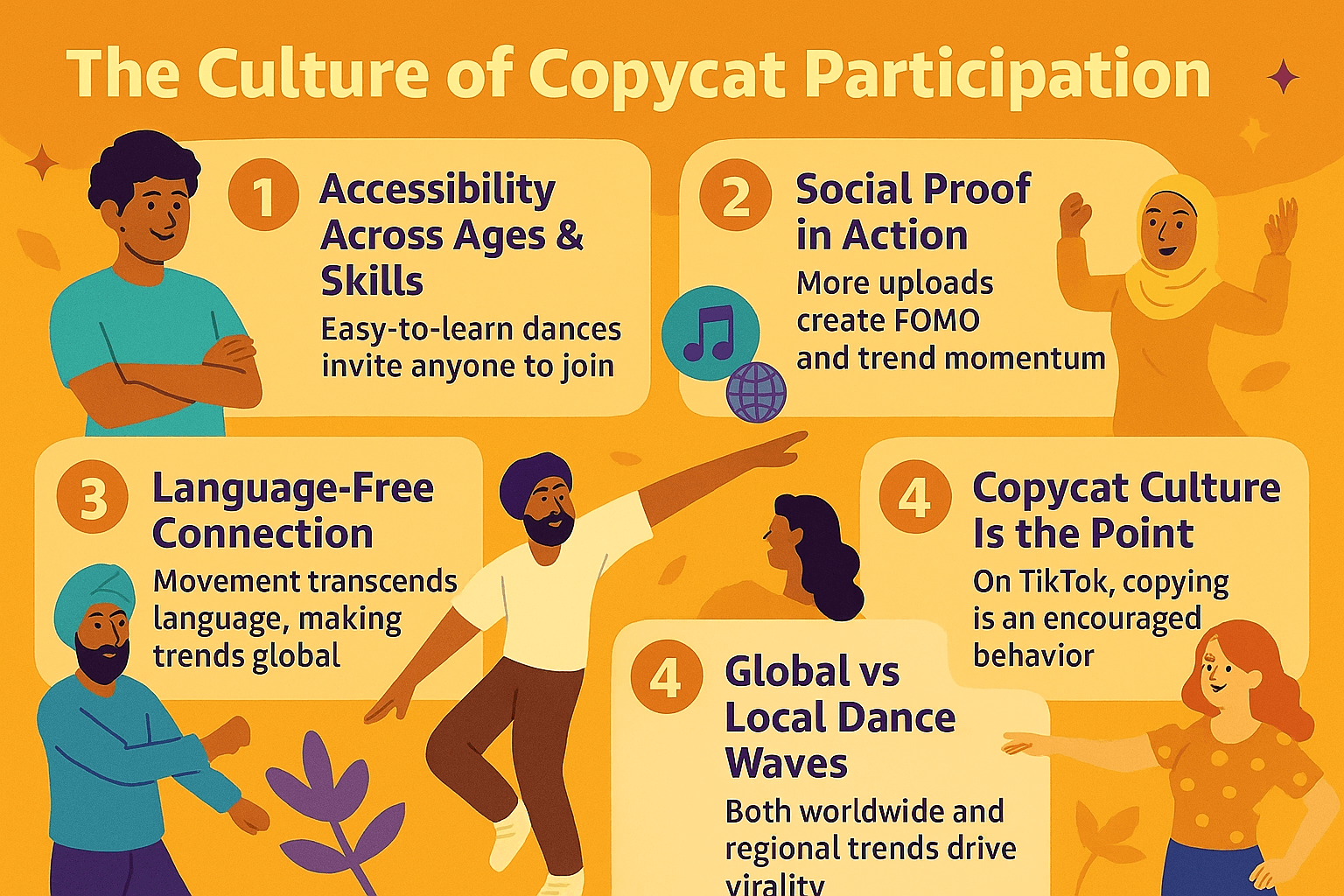 Dance virality in 2025 is fueled by a culture where anyone can join, language doesn’t matter, and imitation is celebrated. This copycat participation creates a ripple effect that turns even the simplest choreography into a global wave.